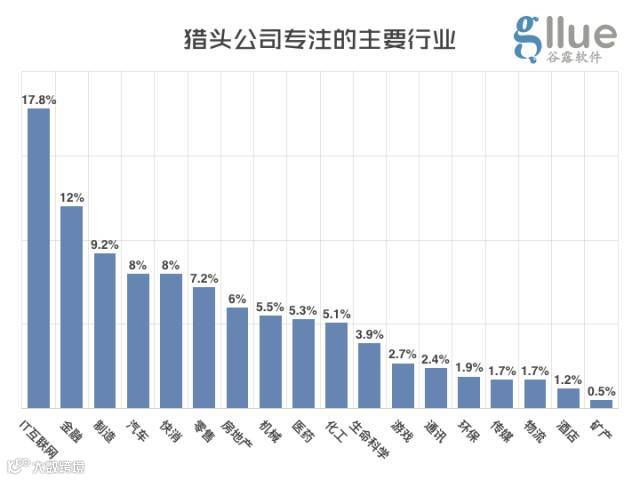 在“互联网+”时代,IT互联网以19.4%稳居中国猎头公司专注行业榜的榜首,金融行业紧追其后。这些专注排名通常与这些行业本身在中国经济发展的状态直接相关,也反映了目前中国各行业的大致情况和热度。