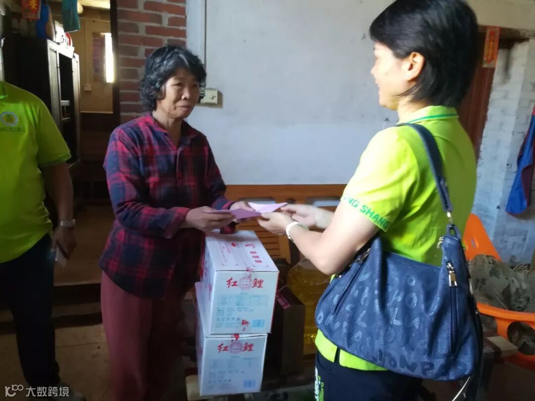 在2018年9月19日上午,四会市青年商会常务副会长/奉献组组长邱荫清、常务副会长/共赢组组长伍志华、副会长张雪琼、副会长郑维明、副理事长张明飞、荣誉理事黄少群、理事陈宗强、邓斯敏、郑诗慧、温增林、甘海洋、会员梁锦程、刘天泉、冯智聪、梁嘉月、叶梅、丁焕仪、叶敏芳、建材爱心联盟商家、家乐福四会海伦城市广场店以及罗源镇共青团负责人严振杰、罗源镇红旗村委会等一众爱心志愿者们对红旗村委会、石寨村委会、洞心村委会、仓丰村委8户困难家庭进行慰问探访,送上生活用品、慰问金及中秋节物品,尽一份微薄之力帮助他们,让他们感受社会的真爱、对生活和未来重拾信心! |