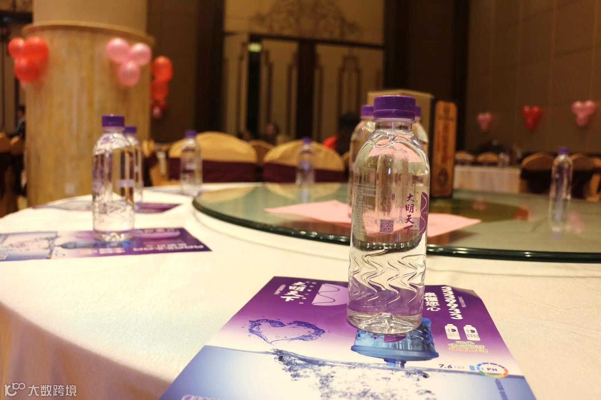 图为四会市玉器商会年会的指定饮用水-大明天下天然弱碱水(为四会市青年商会的会员企业出品)