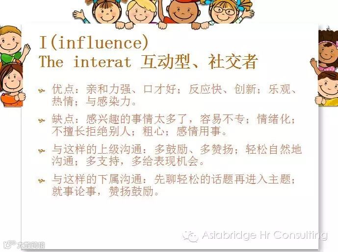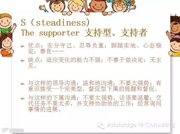 1、所以我们要多自省,多听取别人的意见和建议。别人的建议未必认可,但是肯定体现出了他在DISC中比你更重视的其中一点。我们可以借此向别人学习,使自己更加平衡,综合素质更高。