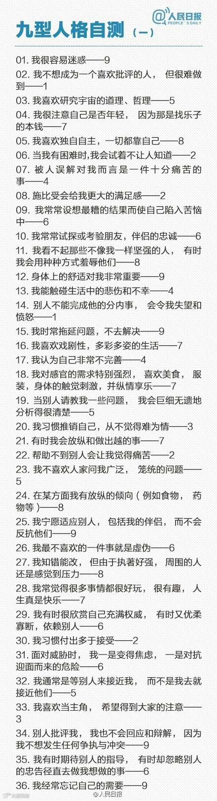 过“九型人格”吗?这是一种古老的心理分型理论,它将人的性格分为九种: