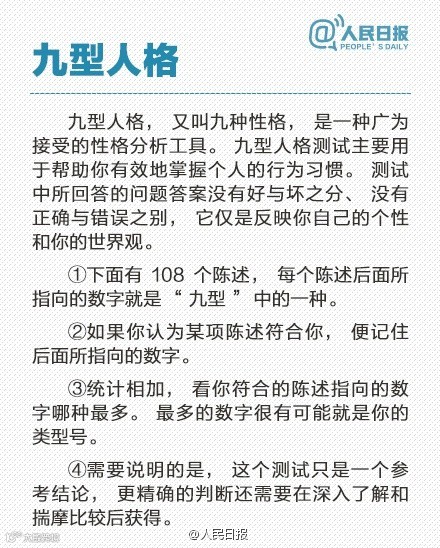 ①完美主义型;②助人型;③成就型;④自我型;⑤智慧型;⑥忠诚型;⑦快乐主义型;⑧领袖型;⑨和平型。你是哪一型?求职季,108个问题,更好了解自己、规划前程,转起自测!
