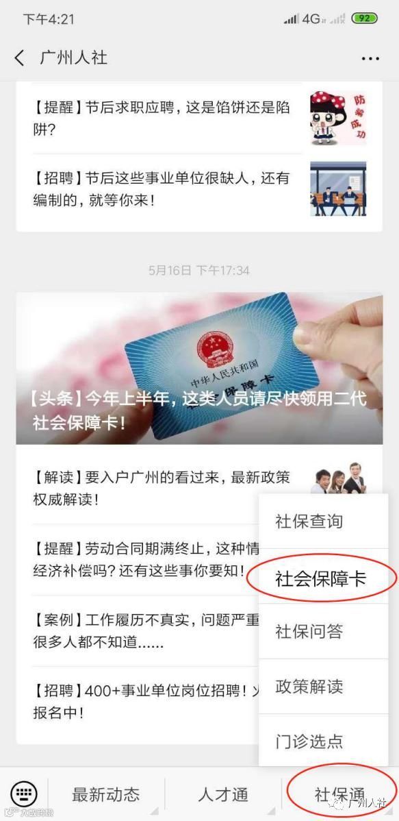 请手机关注微信公众号“广州人社”,在“社保通”栏目→ “社会保障卡”页面