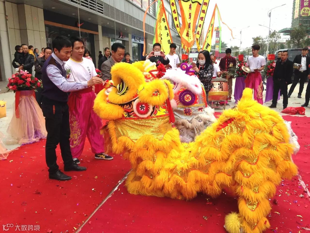 图为四会市青年商会副会长为狮子进行点睛仪式!
