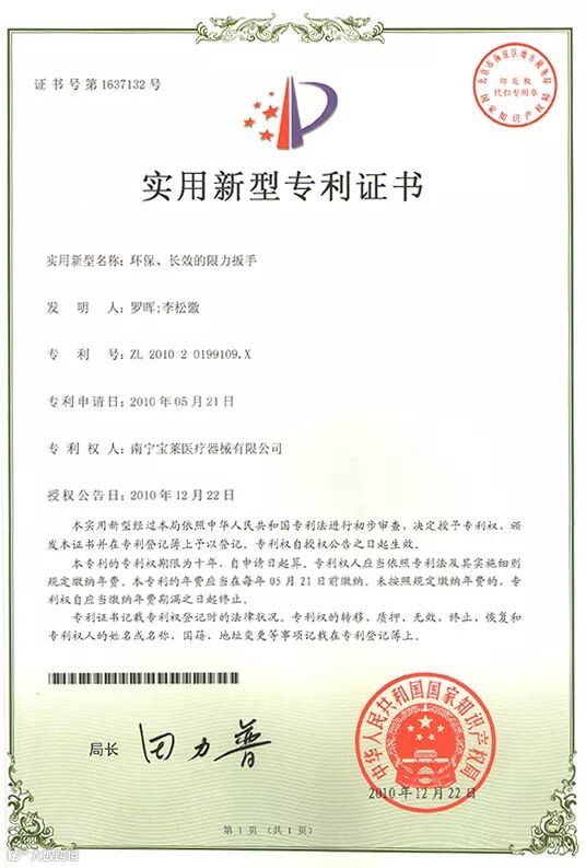 仅磁性限力扳手宝莱就获得了国家两项专利