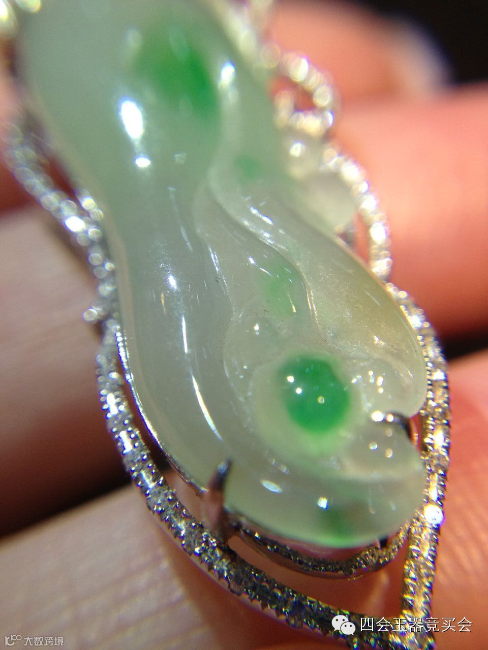 一、名称:镶佛手瓜 、规格:42X15X5.7mm、一口价:3800元
