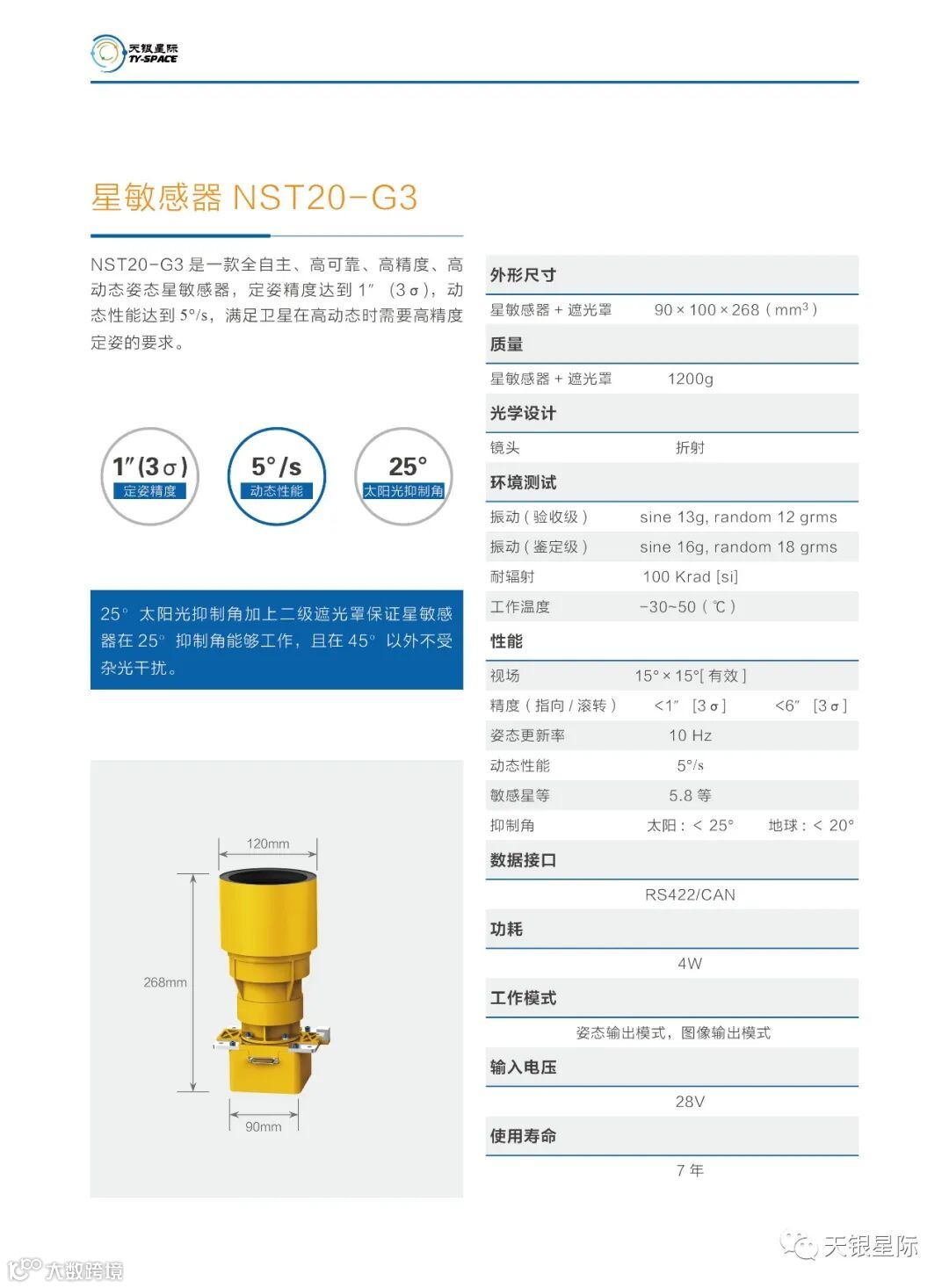 NST20-G3星敏是一款高精度星敏感器,定姿精度为 1″ [3σ],且动态性能可达5°/s,满足了卫星在高动态时需要高精度定姿的要求。