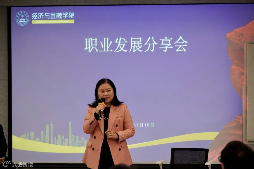 签约仪式后,汇丰环球中国高管为逾百名华工学子带来了一场精彩的职业发展分享会。Lily Shen与Jeff Li结合自身在银行的成长历程,分享了宝贵的职业建议,着重强调了职业生涯早期积累跨职能核心技能的重要性,并介绍了银行所提供的跨地区、跨业务线内部流动职业发展机会。