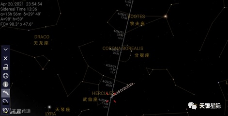 该图为4月20日到4月28日阿特拉斯彗星从武仙座到牧夫座的运行轨迹