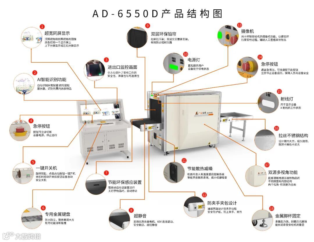 在安全成为刚性需求的今天,一款精准、智能、可靠的X光安检机是守护关键入口的第一道防线。广东安盾公司深谙此道,匠心打造的AD-6550D与AD-10080D两款旗舰级X光安检机,集科技、人性化设计与坚固品质于一身。今天,就让我们通过产品结构图,为您全方位解密这两款“安全卫士”的卓越性能。