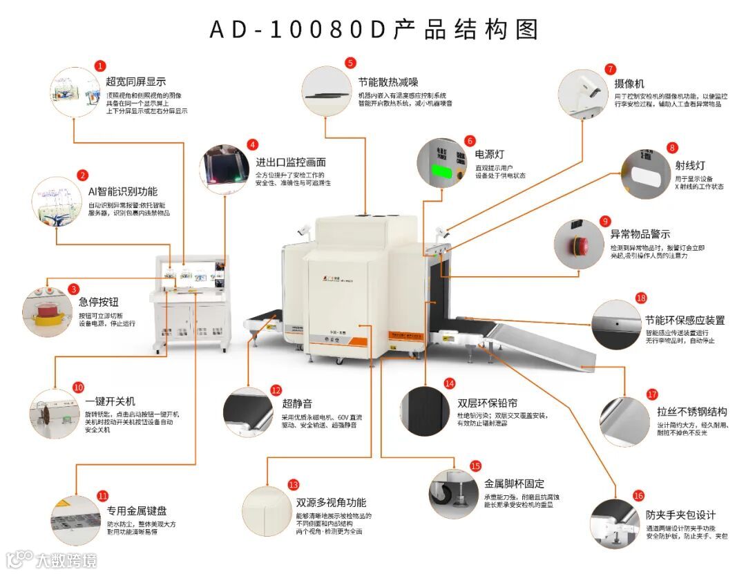 AD-10080D:以其卓越的AI智能识别和主动报警能力,专为国际机场、地铁枢纽、大型体育赛事、重要会议场馆等高人流量、高风险等级的场景设计,是顶级安全防护的代名词。