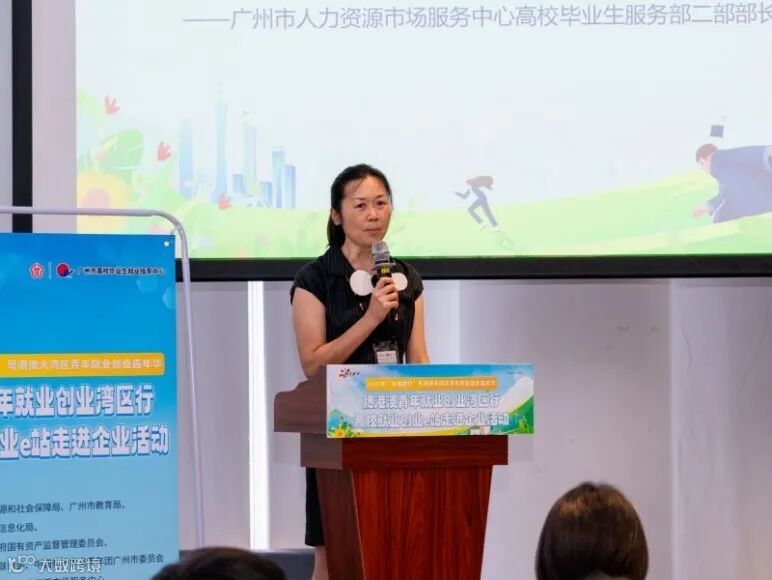 活动开始,广州市人力资源市场服务中心高校二部部长李延青介绍了港澳青年来广州创业就业的补助政策,包括小微企业社保补贴、大湾区青年就业计划生活补助、创业资金资助等多项政策,鼓励港澳青年到广州发展。
