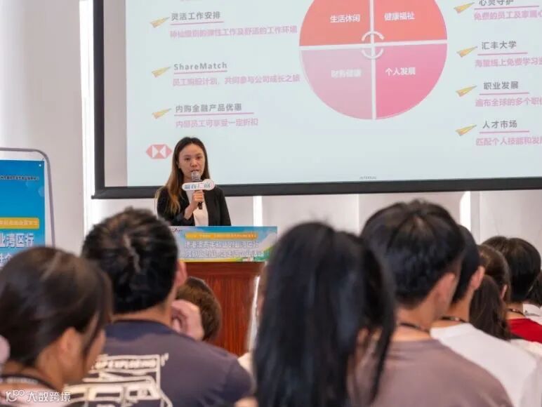 汇丰环球人力资源部招聘总监 Winnie Pan 女士分享了汇丰环球的人才战略规划概况。汇丰环球作为行业头部企业,一直致力于持续优化员工福利和权益保障制度,宣传企业文化,为港澳青年提供广阔的发展平台。