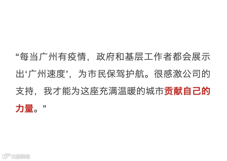 我们深知,在这场抗击疫情的过程中,还有更多同事都做出了贡献:做检测点志愿者;关心社区孤寡老人;或是帮家中一线工作者们做好“后勤保障”……