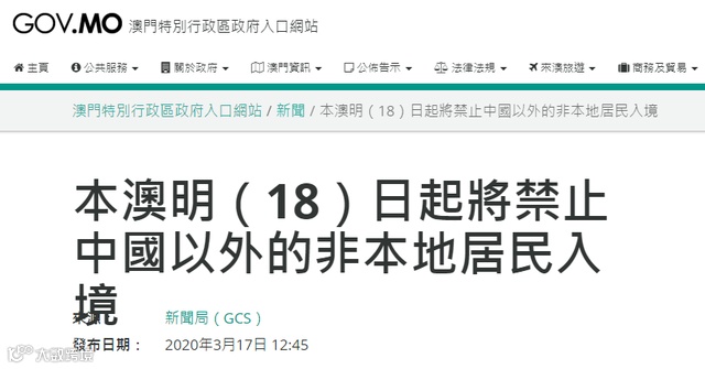 注意!!澳门3月18日(明天)起,禁止非本地居民入境!