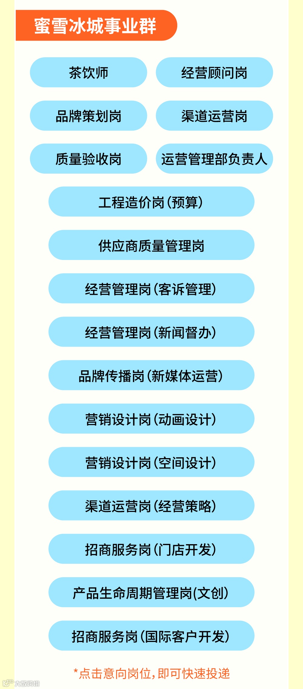 蜜雪冰城官方招聘信息发布平台。英雄不论出身,不放过每一匹千里马。