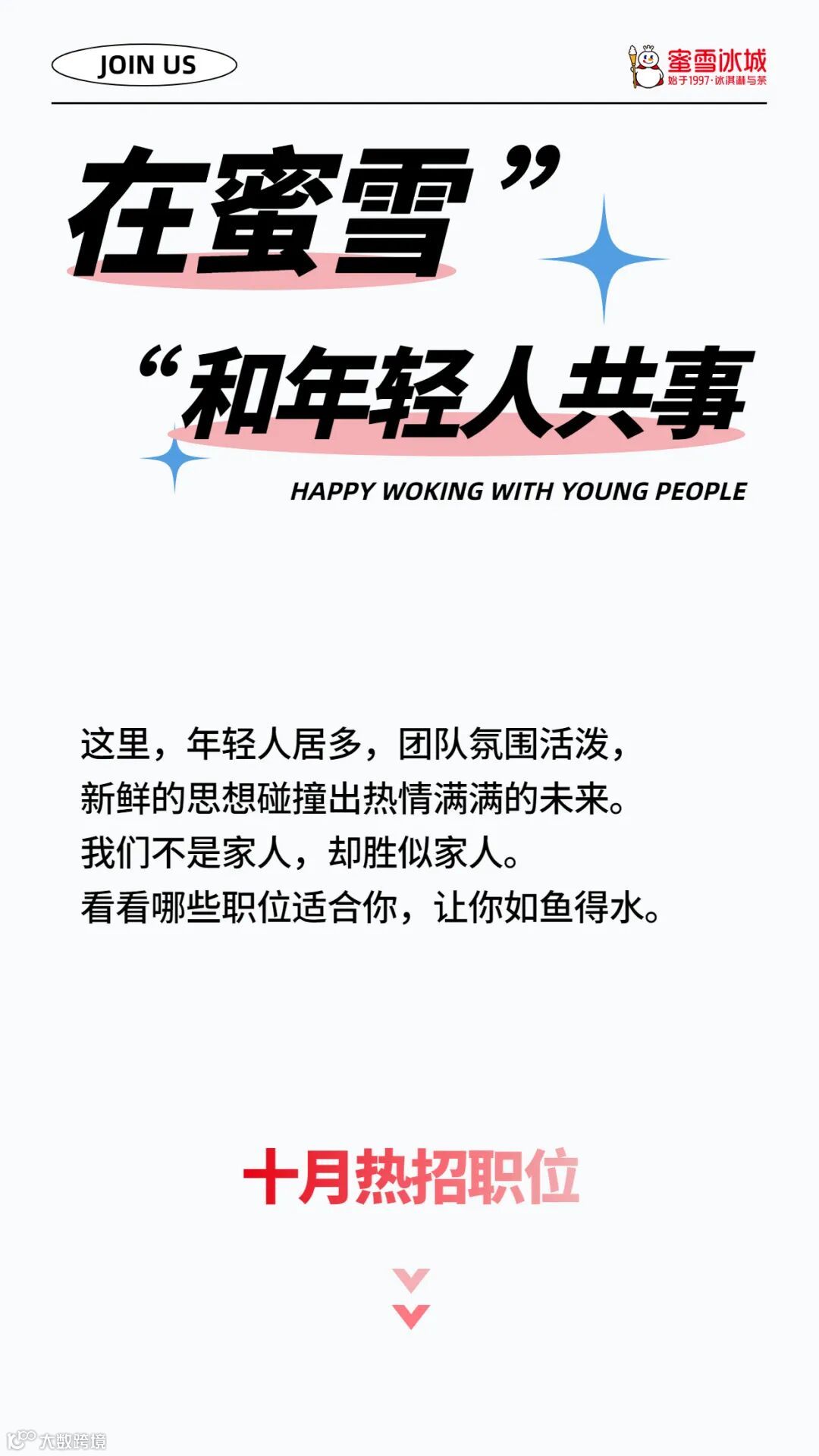 蜜雪冰城官方招聘信息发布平台。英雄不论出身,不放过每一匹千里马。