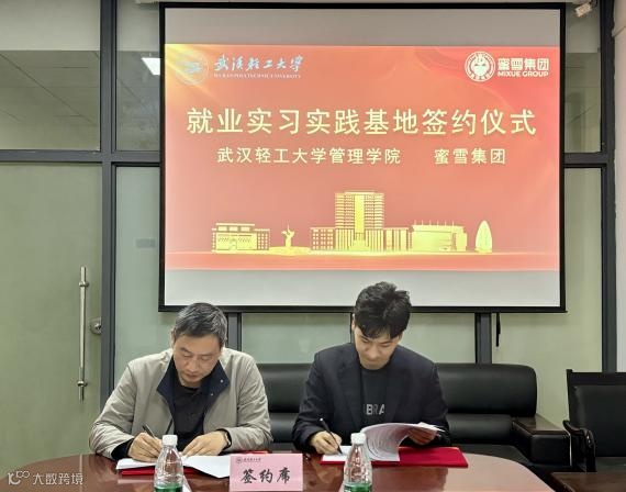 在双方代表的共同见证下,武汉轻工大学管理学院党委书记房桂兵与蜜雪集团雇主品牌与校招组负责人陈冠龙签署了校企合作协议。