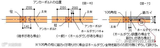 土台に設ける座付きホールダウン金物の近接(150mm内外の位置)。 |