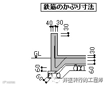 ※基礎 及び擁壁で直接土に接する部分のかぶり厚さには、捨コンクリートの厚みは含みません。また、杭基礎を行なう場合は杭の天端からの寸法がかぶり厚さとなります。