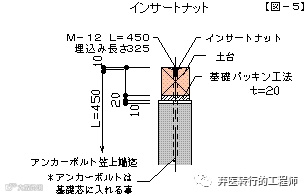 尚 最近では1階にも構造用合板を使用する根太レス工法が多用され、土台の断面欠損になる座堀りが不要で、アンカーボルトの頭が土台から出ない座付きイサートナットが使われるようになりました。