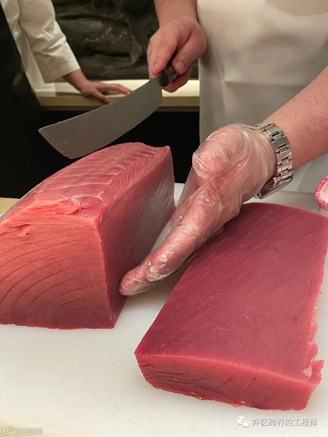 这只是因为,在现代日本餐饮行业当中,蓝鳍金枪鱼,尤其是蓝鳍金枪鱼腹部呈现粉红色、脂肪含量很高,甚至出现类似于像是“雪花牛肉”那样的雪花效果的部分,被认为是最高级的食材。