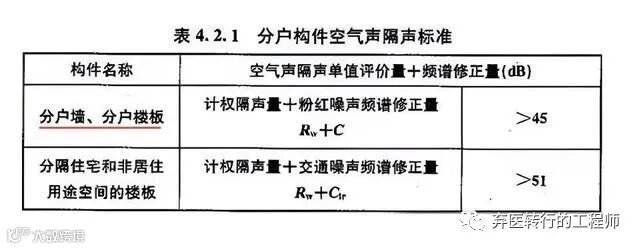 房子新装修的,门窗都是换的隔音的,那问题出在哪里呢?那就是与邻居的分户墙。分户墙就是两户之间的分隔墙,属于两户的共有墙体。住建部发布的《民用建筑隔声设计规范》(GB50118-2010)第4.2.1条针对于住宅的分户墙以及分户楼板的空气声隔音性能,应当满足以下标准: