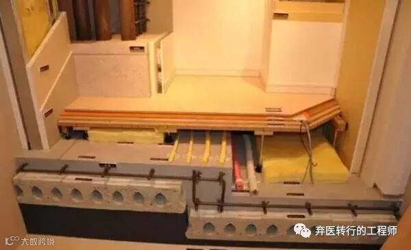混凝土楼板,通常来说标准厚度是80-100mm,日本在这里做的比较好,以前日本的楼板标准是150mm,现在已调高至200mm,楼板厚的好处是有效隔断空气传声。但难以阻断固体传播,像楼上走动、搬椅子等。