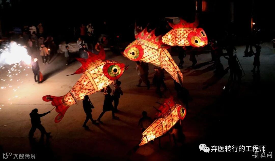 去年我收藏过一个旅游目的地:安徽黄山的汪满田村。这个村子每年元宵节前后会办四天的鱼灯会,家家户户都会用纸扎成鱼灯,载歌载舞来祈福。我后来发现,整个安徽连同无为市在内,不少地方都有这个民俗,已经流传了几百上千年了。你要是在小乡村昏暗的夜里面看鱼灯会,真的像一条一条透亮的大鱼在空中巡游,非常壮观、漂亮,像一出实景版的《大鱼海棠》。