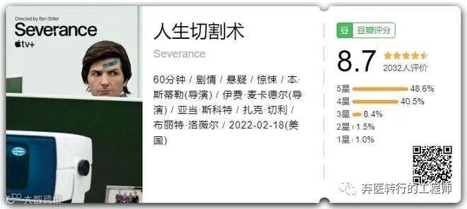 “工业的灰烬”这个概念是来自苹果的一部科幻剧,叫《人生切割术》。讲的是一家公司往员工大脑里面植入芯片,让员工在工作时间只有工作人格,完全没有生活中的记忆和情绪;下班以后又只有生活人格,又完全不记得工作期间发生过什么。
