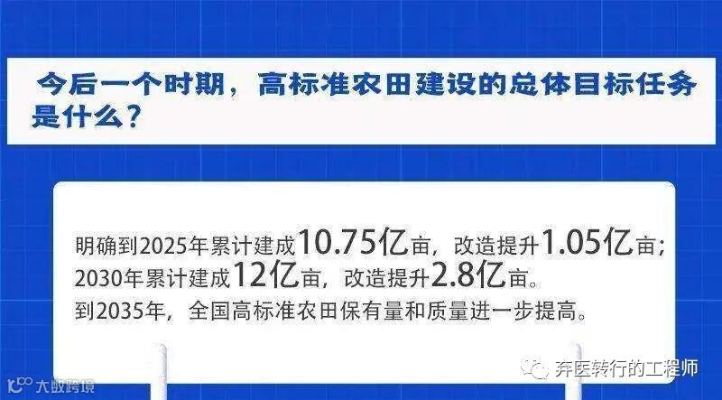 高标准农田,是产量稳定性最好的农田,中国的目标是建设12亿亩。