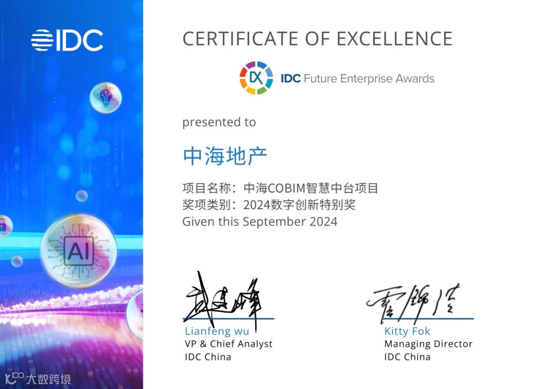 8月29日,全球领先的IT市场研究和咨询公司IDC公布2024 IDC中国未来企业大奖获奖优秀奖名单,凭借在不动产数字化转型的前瞻性探索及成功实践,中海地产喜获三项大奖,是本次名单中获奖最多的组织机构,也是获奖最多的房地产企业。