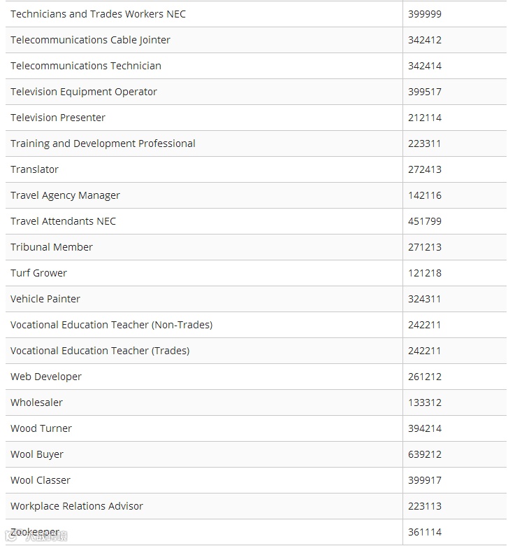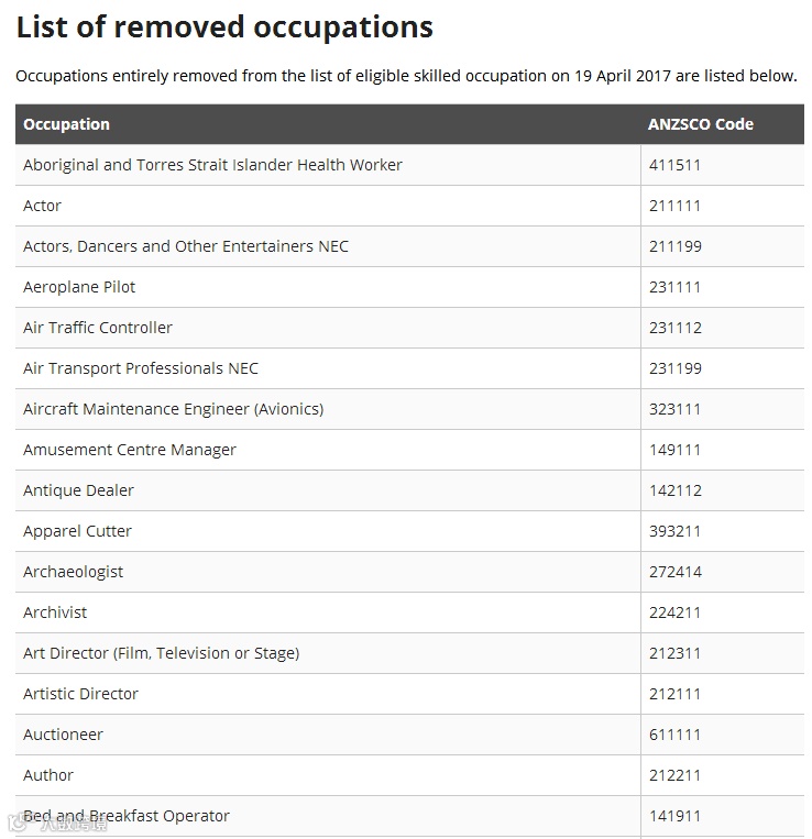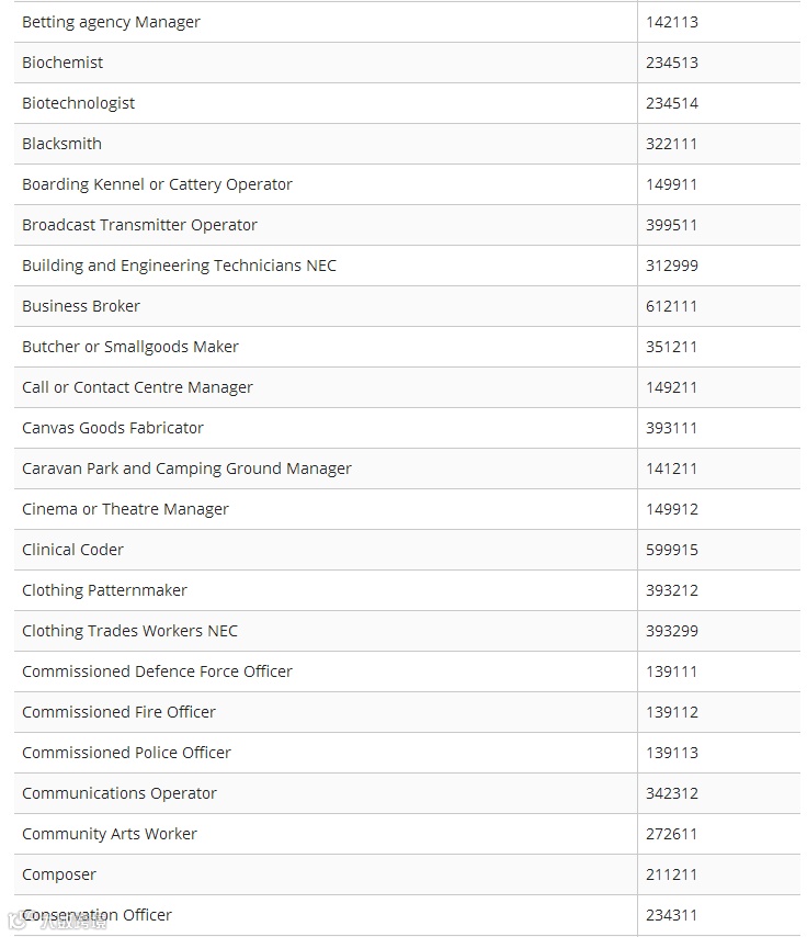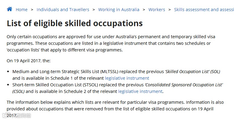 链接:http://www.border.gov.au/Trav/Work/Work/Skills-assessment-and-assessing-authorities/skilled-occupations-lists