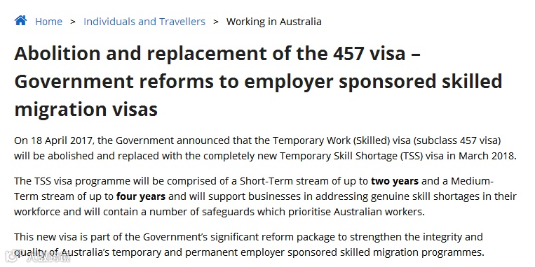 链接:http://www.border.gov.au/Trav/Work/457-abolition-replacement