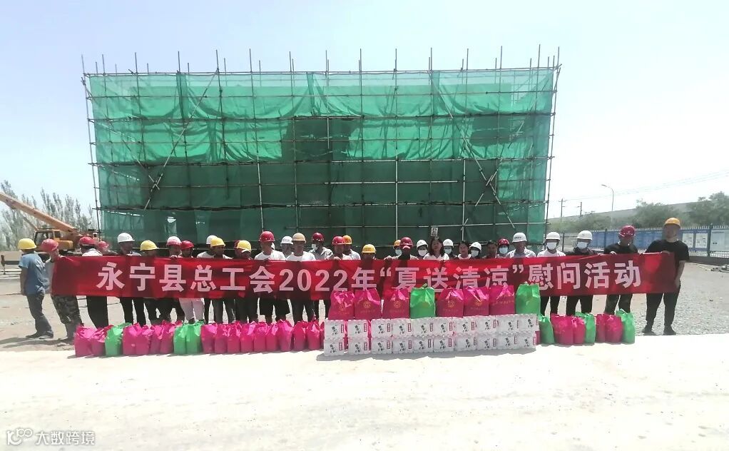 7月4日,永宁县总工会副主席李晓峰一行来到晓鸣股份闽宁智慧农业产业扩建项目现场,慰问在高温下坚守岗位的施工人员并送上防暑大礼包。此次慰问,永宁县总工会为一线施工人员送上冰糖、绿豆、水杯、菊花茶、沐浴露、矿泉水等高温防暑物资;同时向不畏高温酷暑,奋战在一线岗位上的劳动者致以崇高的敬意和亲切的问候。