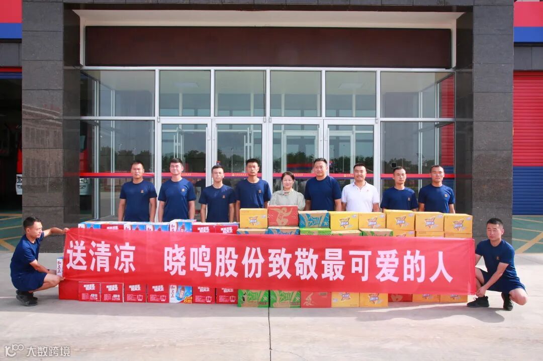连日来宁夏高温持续,骄阳似火,酷暑难耐,为致敬高温天气下依然坚守在战斗岗位的消防战士、公安干警、医护工作者,8月2日,晓鸣股份为一线工作者送上了高温慰问品。
