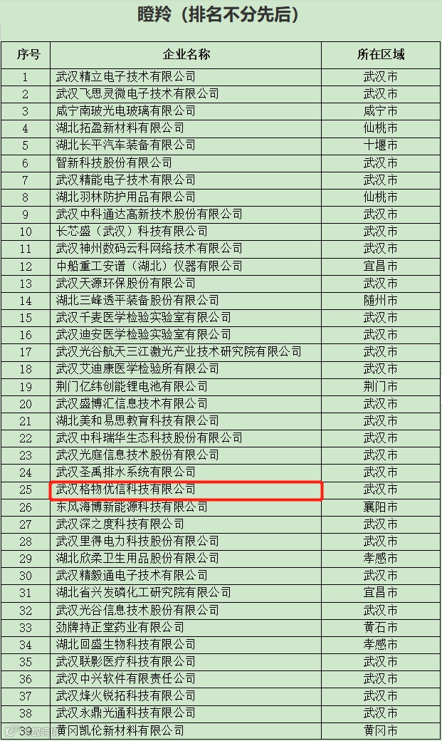 第一批拟入库湖北省科创“新物种”企业名单