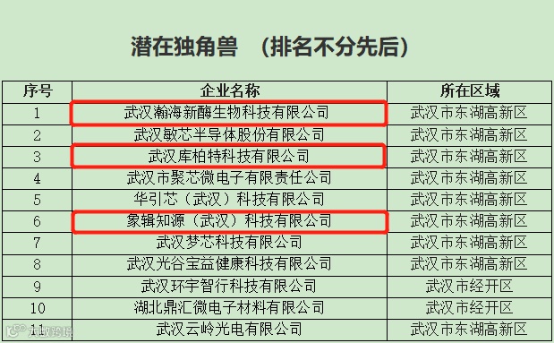 潜在独角兽3家:瀚海新酶、库柏特、象辑知源;瞪羚8家:格物优信、小安科技、长盈通、益士天慧、芯动科技、泰乐奇、物鼎安全、恩智电子。