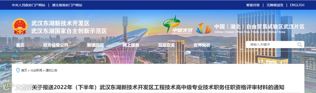 关于报送2022年(下半年)武汉东湖新技术开发区工程技术高中级专业技术职务任职资格评审材料的通知 |
