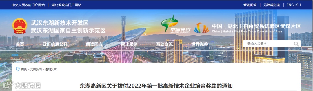 根据《武汉市高新技术企业培育三年(2019-2021年)行动计划》(武政规〔2019〕20号)《关于推动高新技术企业加快发展的若干措施》(武新管〔2021〕4号)等文件精神,现就办理东湖高新区2022年度第一批高新技术企业培育奖励拨款手续通知如下: