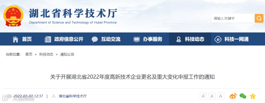 关于开展湖北省2022年度高新技术企业更名及重大变化申报工作的通知