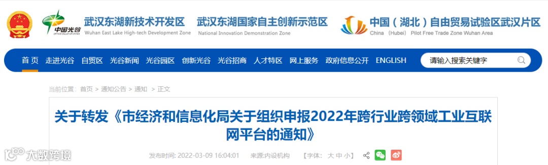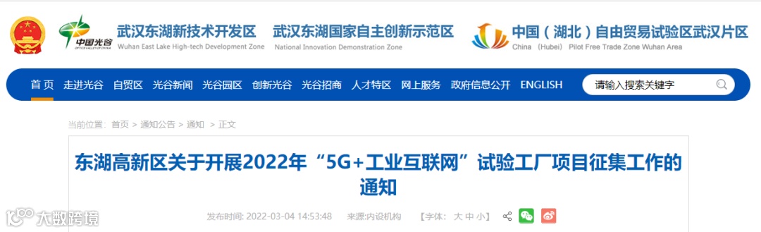 东湖高新区关于开展2022年“5G+工业互联网”试验工厂项目征集工作的通知 |