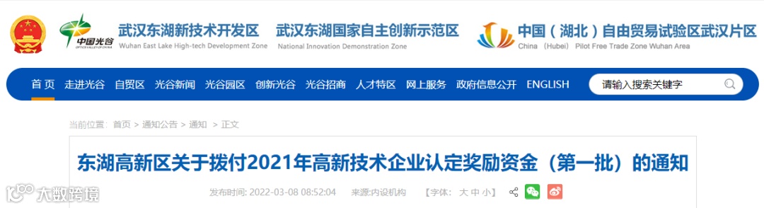 关于东湖高新区关于拨付2021年高新技术企业认定奖励资金