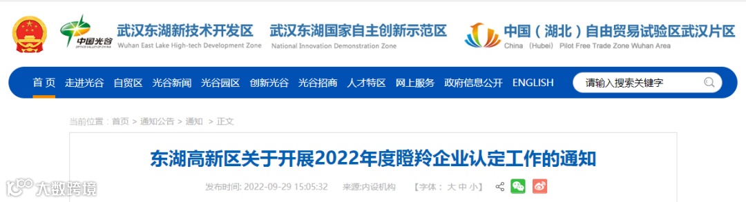 东湖高新区关于开展2022年度瞪羚企业认定工作的通知 |