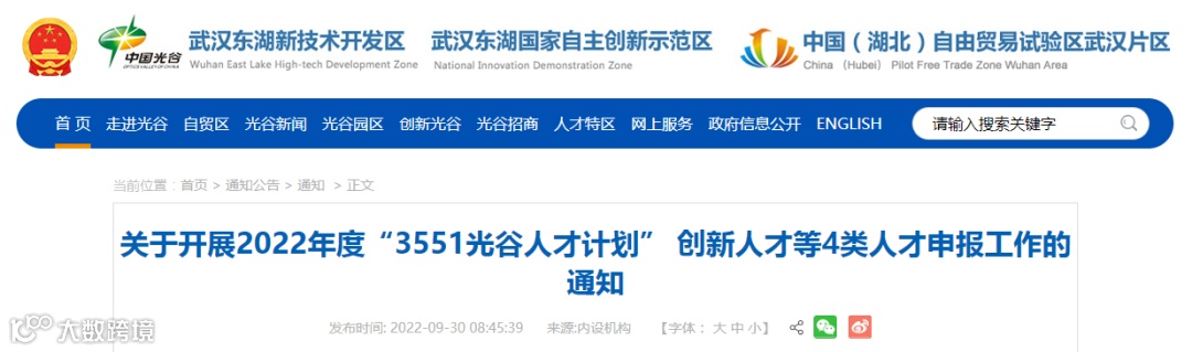 关于开展2022年度“3551光谷人才计划” 创新人才等4类人才申报工作的通知 |