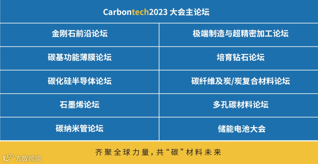 Carbontech 2023以“创新·转型·布局产业新赛道”为主题,从解决产业难题和对接需求出发,结合最前沿科技以及全球产业动态,针对碳材料产业链创新,一站式探索碳材料产业化应用新机遇、布局产业新赛道,搭建一个跨界融合、产学研联动、共商未来的平台。