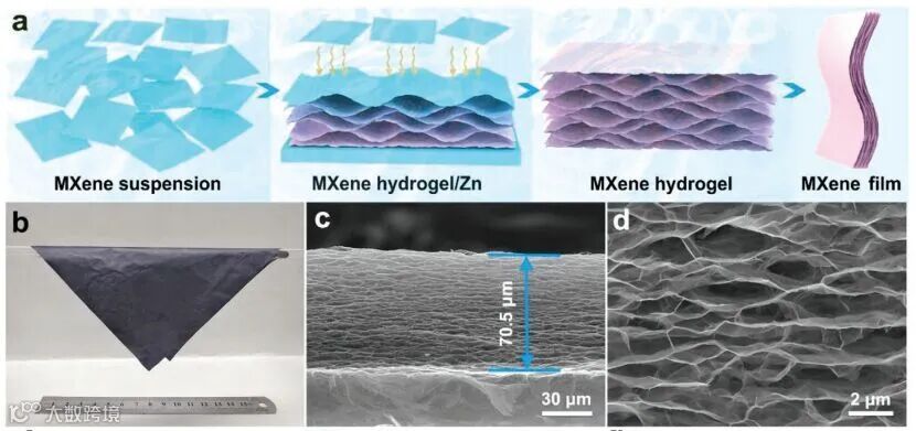 大面积MXene膜的自组装是实现其在各种储能设备中应用的主要步骤。但是,具有高导电性以及出色的机械和电化学性能的柔性MXene薄膜的可扩展的自组装仍然是一个挑战。最近,南开大学牛志强教授团队开发了一种同步还原和自组装策略来制造柔性MXene薄膜的方法,其中MXene薄膜在Zn箔表面上被同步还原和自组装。相关工作以题为“Scalable 3D SelfAssembly of MXene Films for Flexible Sandwich and Microsized Supercapacitors”发表在Advanced Functional Materials上。