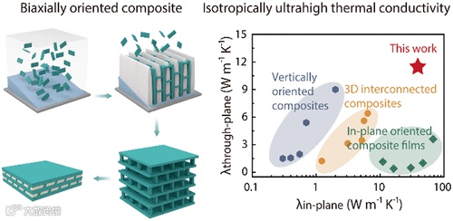 文献题目:Isotropically Ultrahigh Thermal Conductive Polymer Composites by Assembling Anisotropic Boron Nitride Nanosheets into a Biaxially Oriented Network
