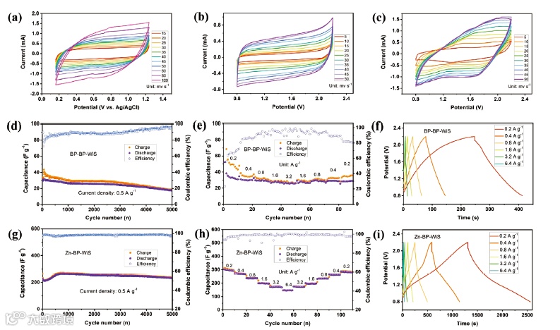 图2,BP-BP-WiS和Zn-BP-WiS的电容器数据图