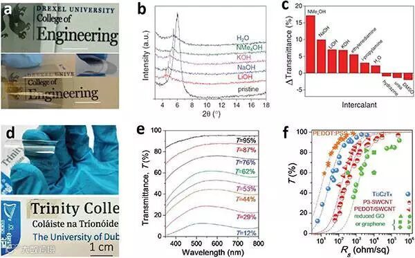 (e)旋涂Ti3C2Tx膜的UV-Vis透射率曲线;